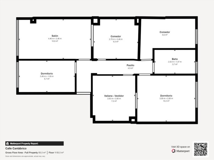 Actualmente cuenta con cocina, cuarto de baño amplio, salón y una habitación italiana ideal para usar como comedor, 2 dormitorios y una habitación italiana que comunica con la habitación principal por lo que sería también ideal para convertir en un amplio vestidor.